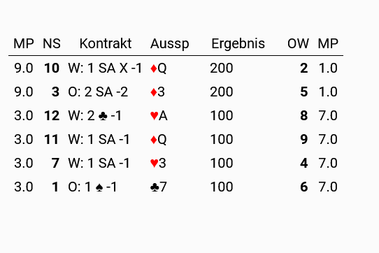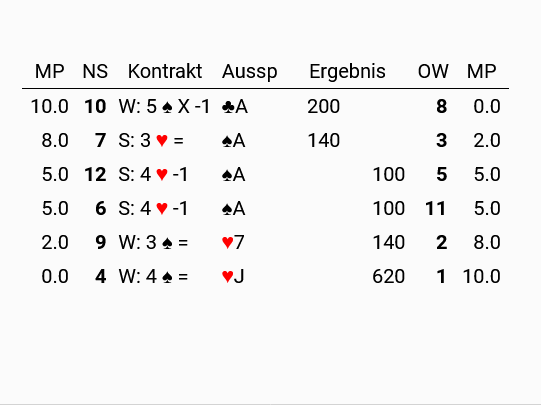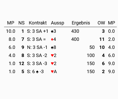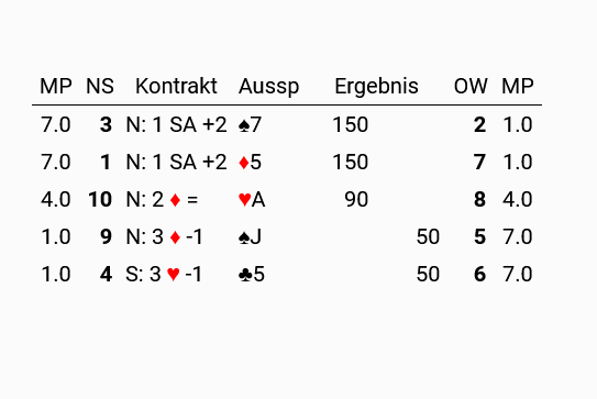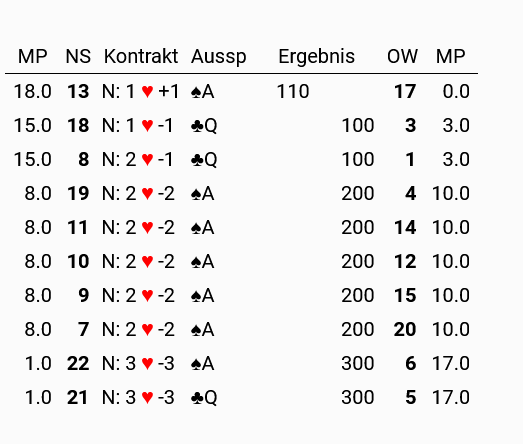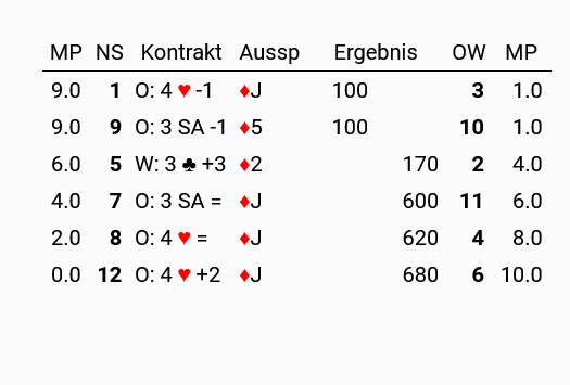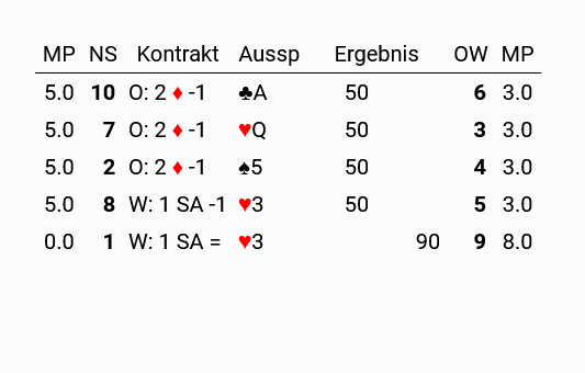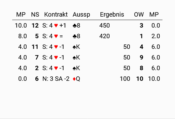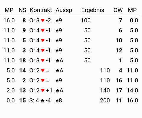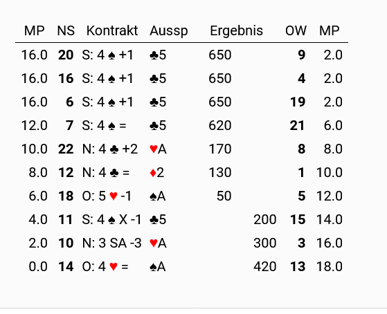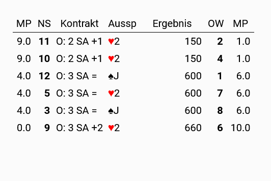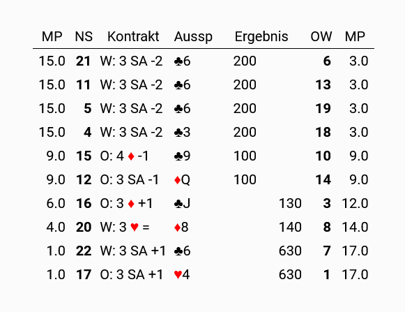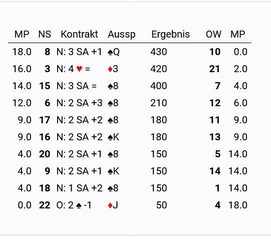 Die 5 Paare ( = ca. 55% ), die hier im OF Teilkontrakt versandet sind, müssen sich dringend mit ihrer Blattbewertung beschäftigen.