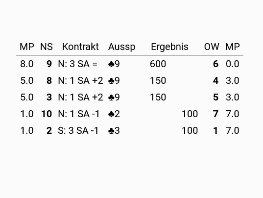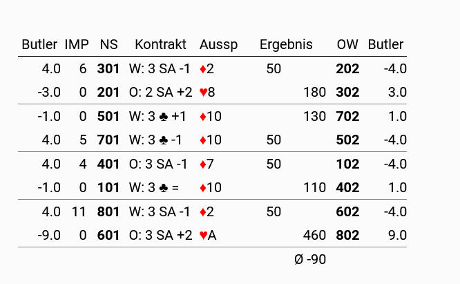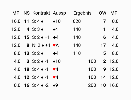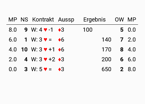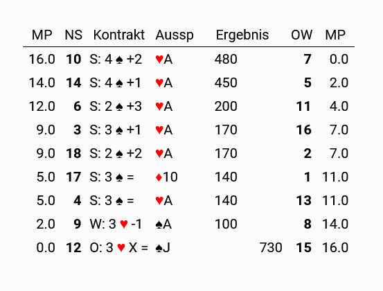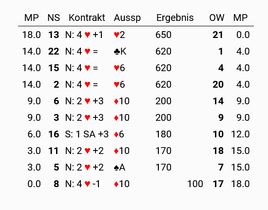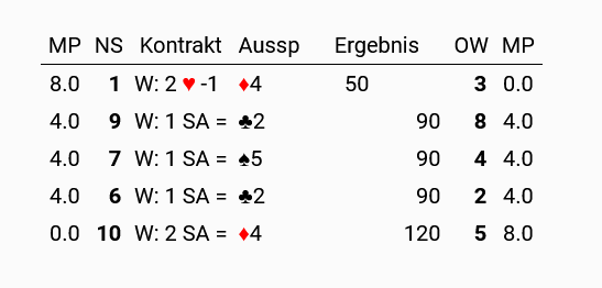 Eine fantastische Leistung von N/S, alle 4 haben hervorrragendes Bridge gespielt.