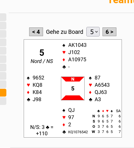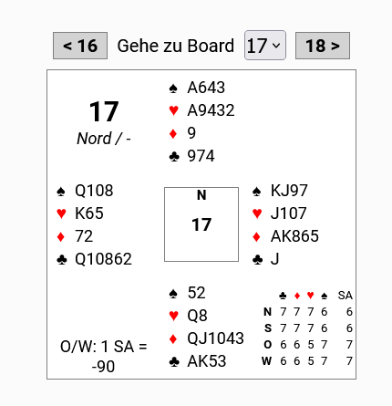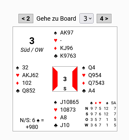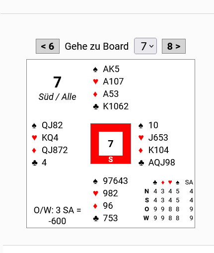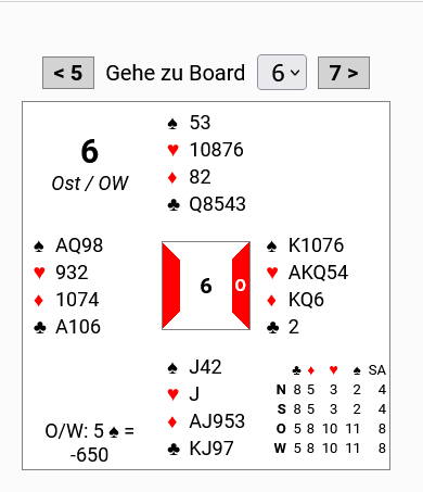 Wir bekamen o.g. Board in der zweiten Runde des Turniers.