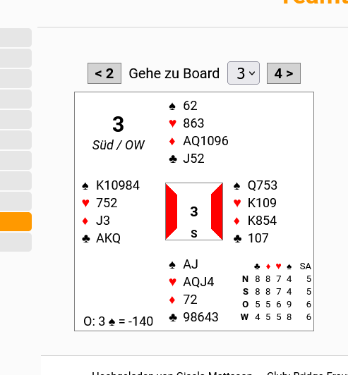 Ich finde es etwas schade, dass nur 1 Paar auf O/W das Gebot auf der Zweierstufe abgegeben hat.