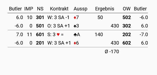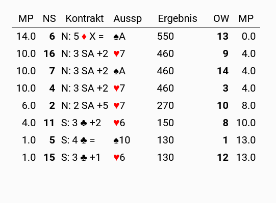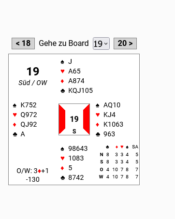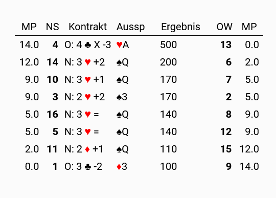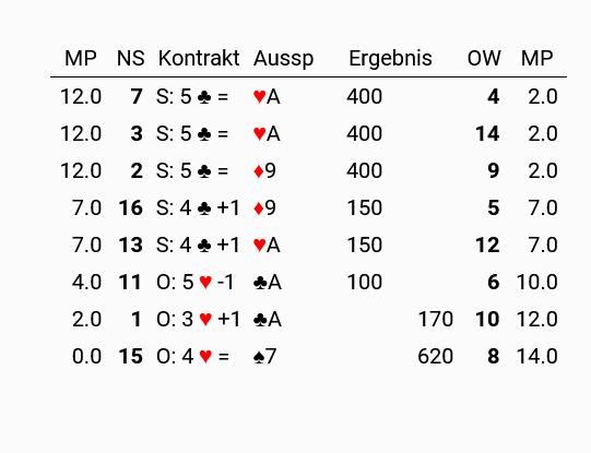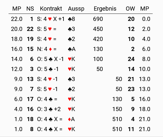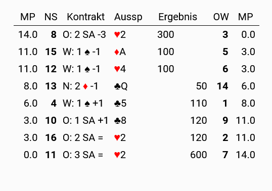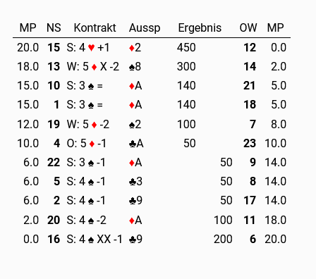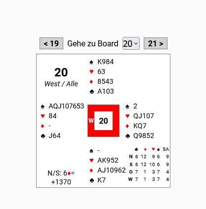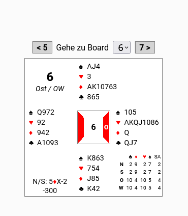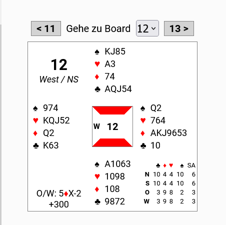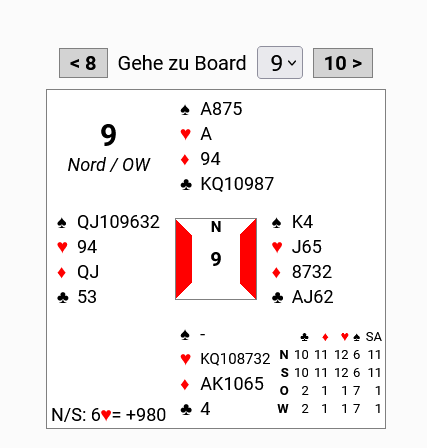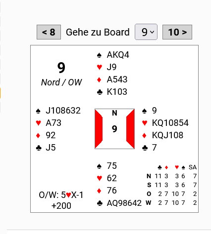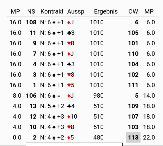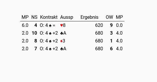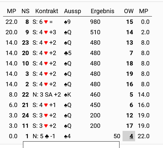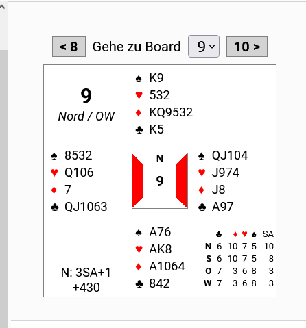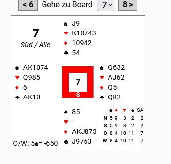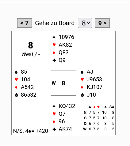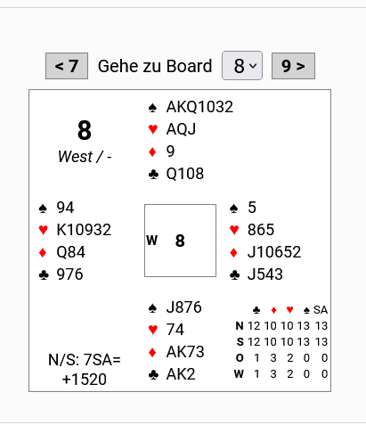 Gratulation und Respekt an Paar 7, die immerhin den Schlemm ausreizten, leider kein Fleißkärtchen für die Paare 6 und 8.