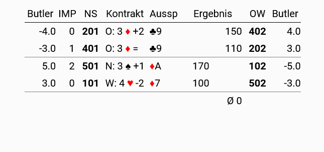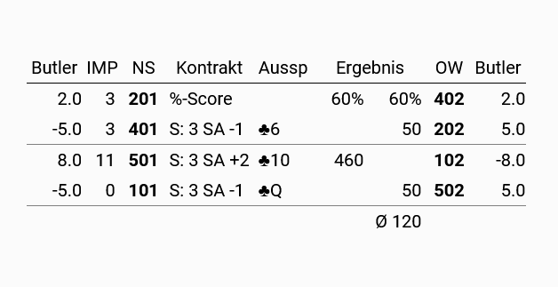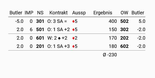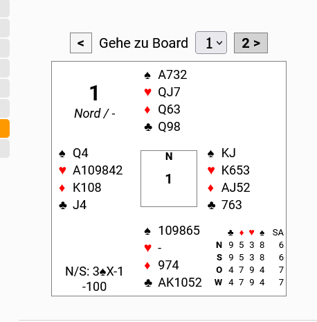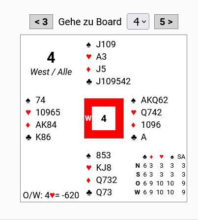Heute habe ich eine Standardreizung, nachdem 3 von 4 Paaren nicht im Vollspiel waren.