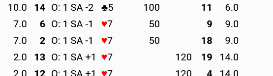 In unserer Beispielhand ist es tatsächlich so, dass im Schnitt etwas überraschend auch tatsächlich nur 7 Stiche in Pik erzielt wurden.