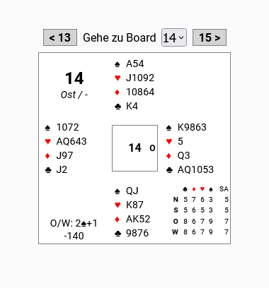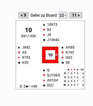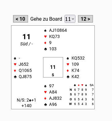 Für den Fall, dass West doch noch ein Gebot finden würde, würde man wahrscheinlich mit der Südhand kompetitiv auch 2 Pik bieten, diese " Chance" soll sich der Gegner allerdings erst einmal selbst verdienen, ich liefere sie ihm nicht freiwillig.