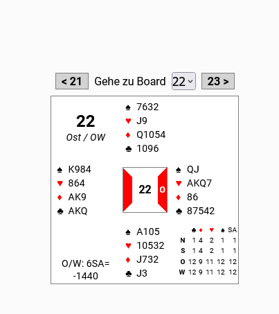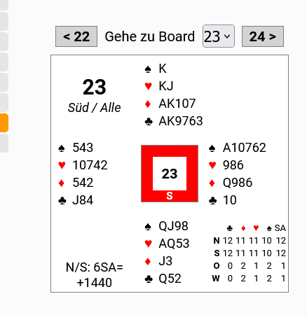 2. Sollte Ost ein 5er Treff haben, dürfte dies auch für 6 SA den entscheidenden zwölften Stich liefern.